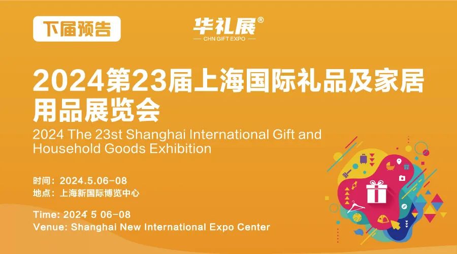 2024第23屆上海國際禮品及家居用品展覽會(上海禮品展)展覽時間:2024年5月6-8日展覽地址:上海新國際博覽中心(龍陽路2345號)