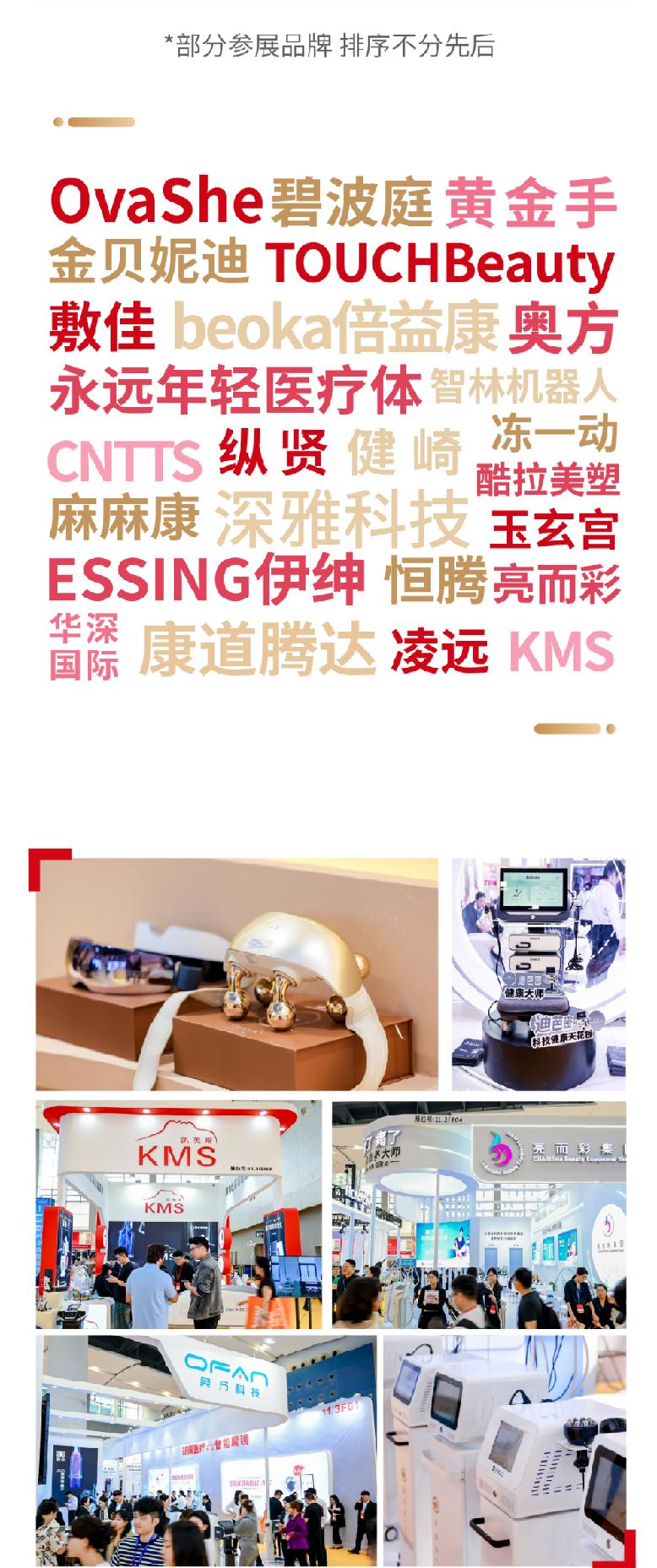 特色展區:特設醫美及配套產品展區、美甲美睫及護理展區、綠色供應鏈專區、渠道好物爆品區、貴婦護膚體驗專區、口服美容爆品區、科技美容專區、醫學美容專區、養生健康專區、展團專區等。