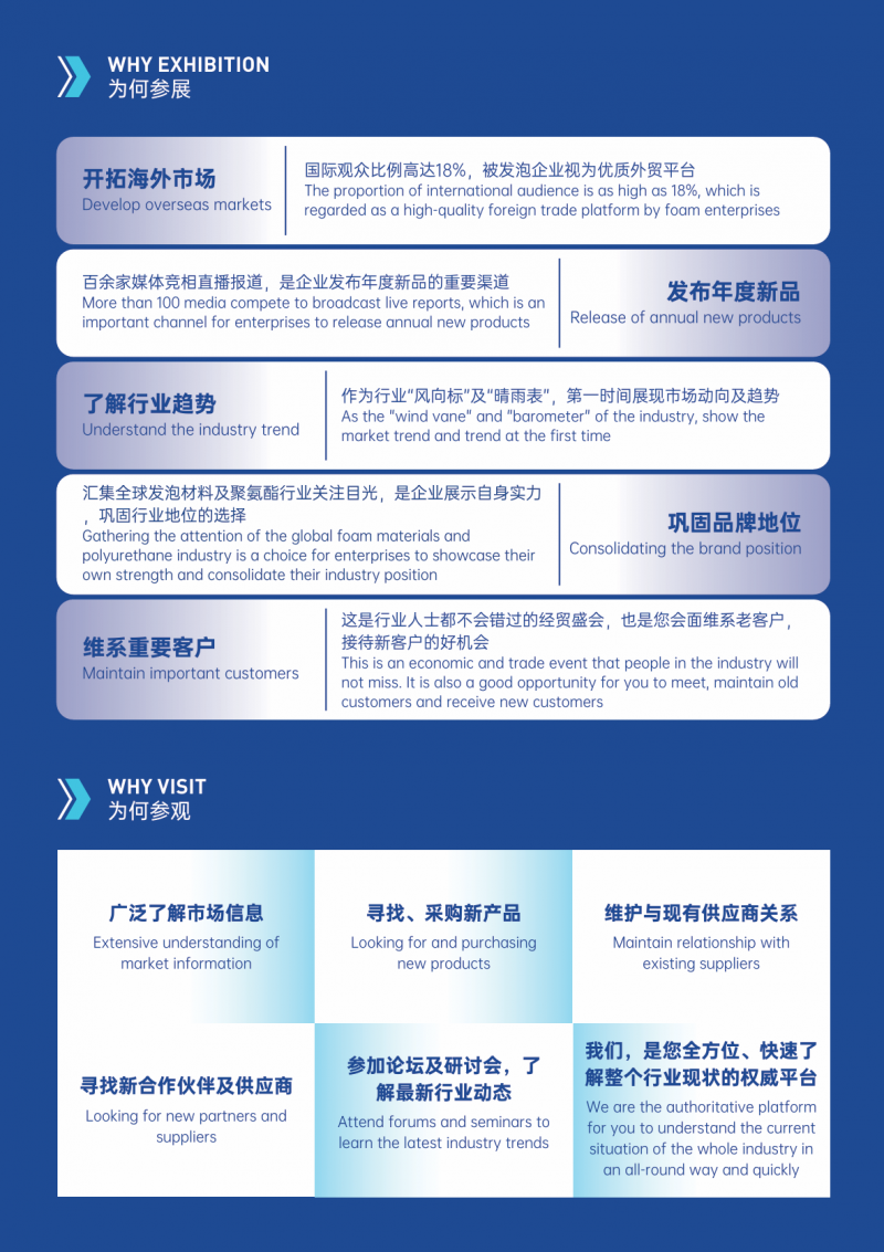 議題涵蓋: 市場趨勢與數據報告、政策法規解讀(如歐盟Reach)、前沿技術分享(如CO₂發泡技術)、下游應用創新(如新能源汽車中的應用)等。