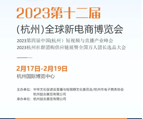 2023第十二屆(杭州)全球新電商博覽會于2023年2月17-19日杭州國際博覽中心盛大召開,本次大會預計展出7大展館、10萬平方、2600家優質展商,擬邀請20萬專業觀眾到場參觀選品、貿易合作,推動新電商行業創新發展,深度賦能產業數字化轉型,助力參展企業構建線上新渠道產業鏈布局,推動“直播+短視頻”、“社群+團購”、數字+電商”等新模式發展,促進我國新電商產業規范、健康發展,為穩經濟、擴內需、促消費提供有力支撐,為我國經濟提質升級與數字化發展以及助力鄉村振興提供新動能、新模式。
