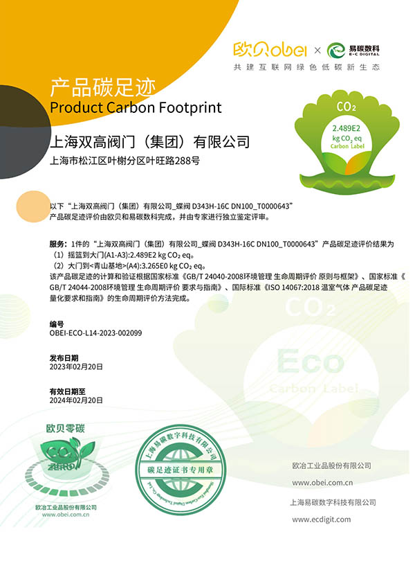 蝶閥D343H-16C DN100-T0000643-2022碳足跡報告