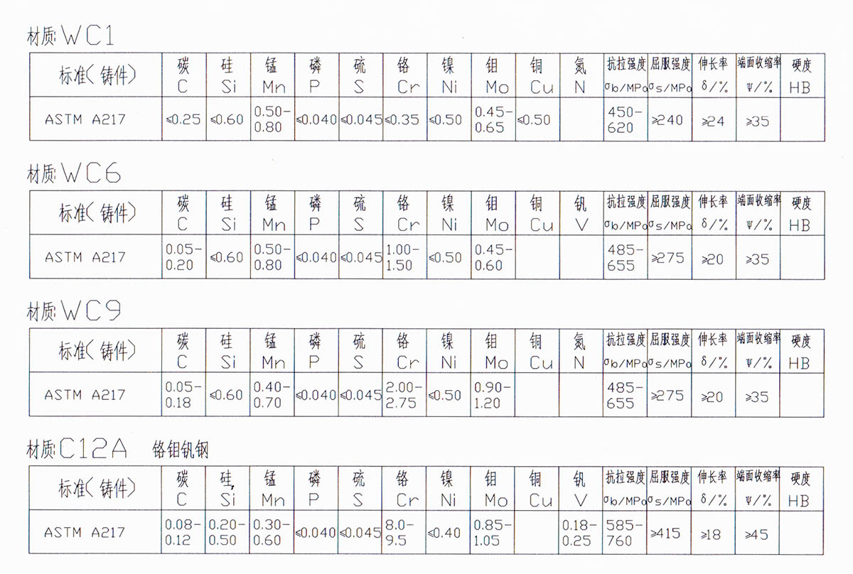 閥門WCB/WCA/WCC/A105材質元素表