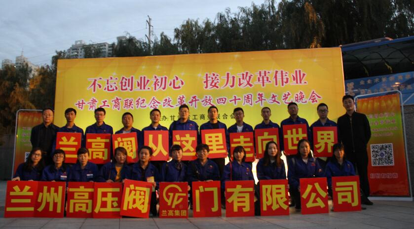 9月27日晚,主題為“不忘創業初心,接力改革偉業”的甘肅工商聯紀念改革開放四十周年文藝晚會在蘭州音樂廳盛大演出。甘肅省委常委、省委統戰部部長馬廷禮等領導觀看演出。演出結束后,馬廷禮等領導與蘭州高壓閥門有限公司常務副總經理郝宏達一道與演職人員合影留念。