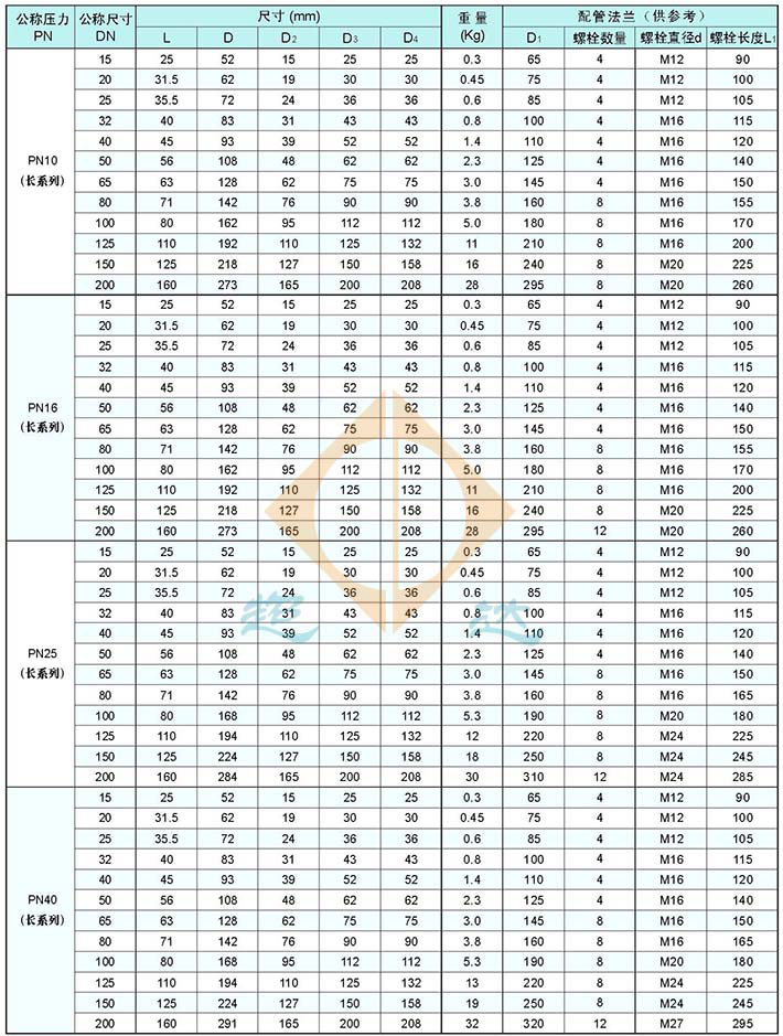 口徑:NPS½~NPS8、DN15~DN200